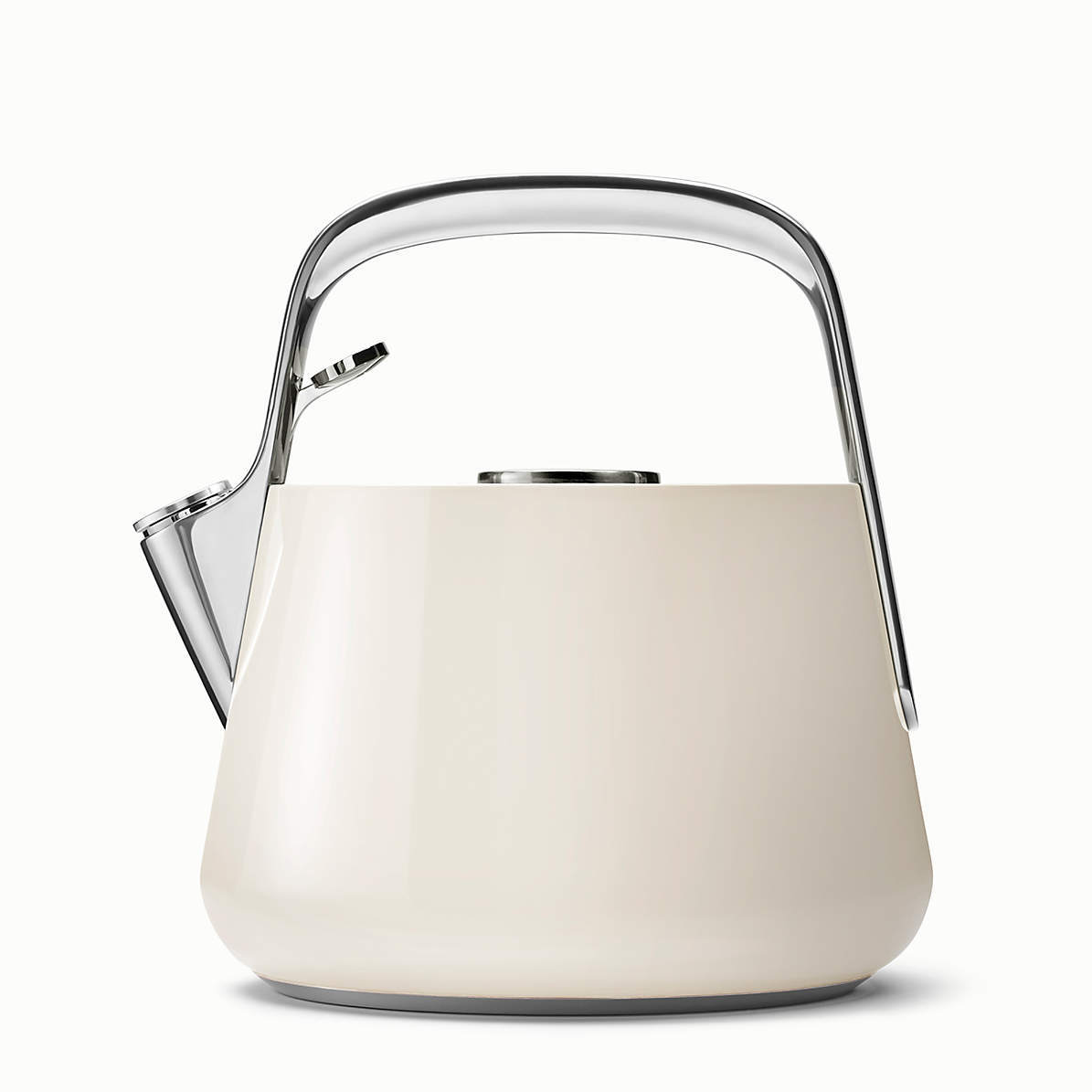 You’ll be smitten with this beautifully designed kettle that updates a classic with modern minimalism. The stainless steel kettle is finished on its exterior with a creamy ceramic finish, while the handle, knob and spout offer gleaming contrast. Compatible with all stovetops, the tea kettle emits a cheerful whistle when water has been brought to a boil. Pair with our other Caraway cookware in cream for a coordinated kitchen.